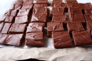 - Drop by the spoonful onto waxed or parchment paper lined baking sheets OR pour into a greased and parchment paper lined 8-inch square pan. Cool in the refrigerator until set.